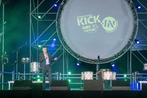 Dat consensus en sociale veiligheid belangrijk zijn tijdens deze Kick-In, wordt nog eens benadrukt tijdens de openingsspeeches in de grote tent. ‘Focus on respecting each other’s space!’, roept D&I officer Sterre Mkatini tegen de eerstejaars, die worden aangemoedigd om de zin twee keer te herhalen. Alleen daarmee is een sociaal veilige omgeving mogelijk, weet de diversiteitsmedewerker van de UT.