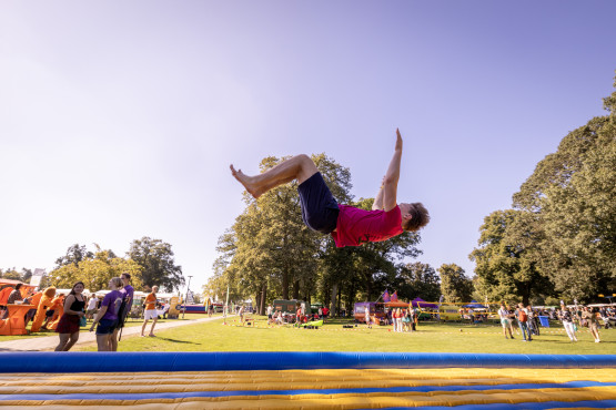 ‘We laten zien wat Enschede heeft te bieden’, zegt Peytier. ‘Ik zou de nieuwe studenten als tip meegeven om alles te bekijken. Spreek ook zoveel mogelijk mensen aan en sta overal open voor. Iedereen zit in hetzelfde schuitje en wil studiegenoten leren kennen.’ Collega-flyeraar Van den Heuvel doet zelf ook nog een keer mee aan de Kick-In, als ouderejaars. ‘Ik ben na twee jaar van studie geruild. Daarom doe ik nog een keer mee als kiddo, ook al ken ik de stad Enschede inmiddels goed. Tijdens de Kick-In leer je heel makkelijk mensen kennen van je studie.’