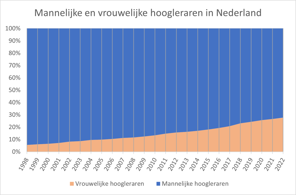 Dat blijkt uit de personeelscijfers van de universiteiten. Om precies te zijn: vorig jaar was 26,7 procent van de hoogleraren vrouw en nu is dat 27,6 procent.