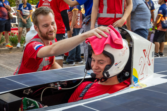 Solar Team Twente kwam deze week als tweede over de finish in de World Solar Challenge. Zonsopkomst, zonsondergang, bosbrand en de traditionele duik in de fontein: de race van 3000 kilometer leverde zoals altijd bijzondere foto’s op. Wij selecteerden er tien. (foto's: Solar Team Twente, Cas van Laar, Bram Kloos.)