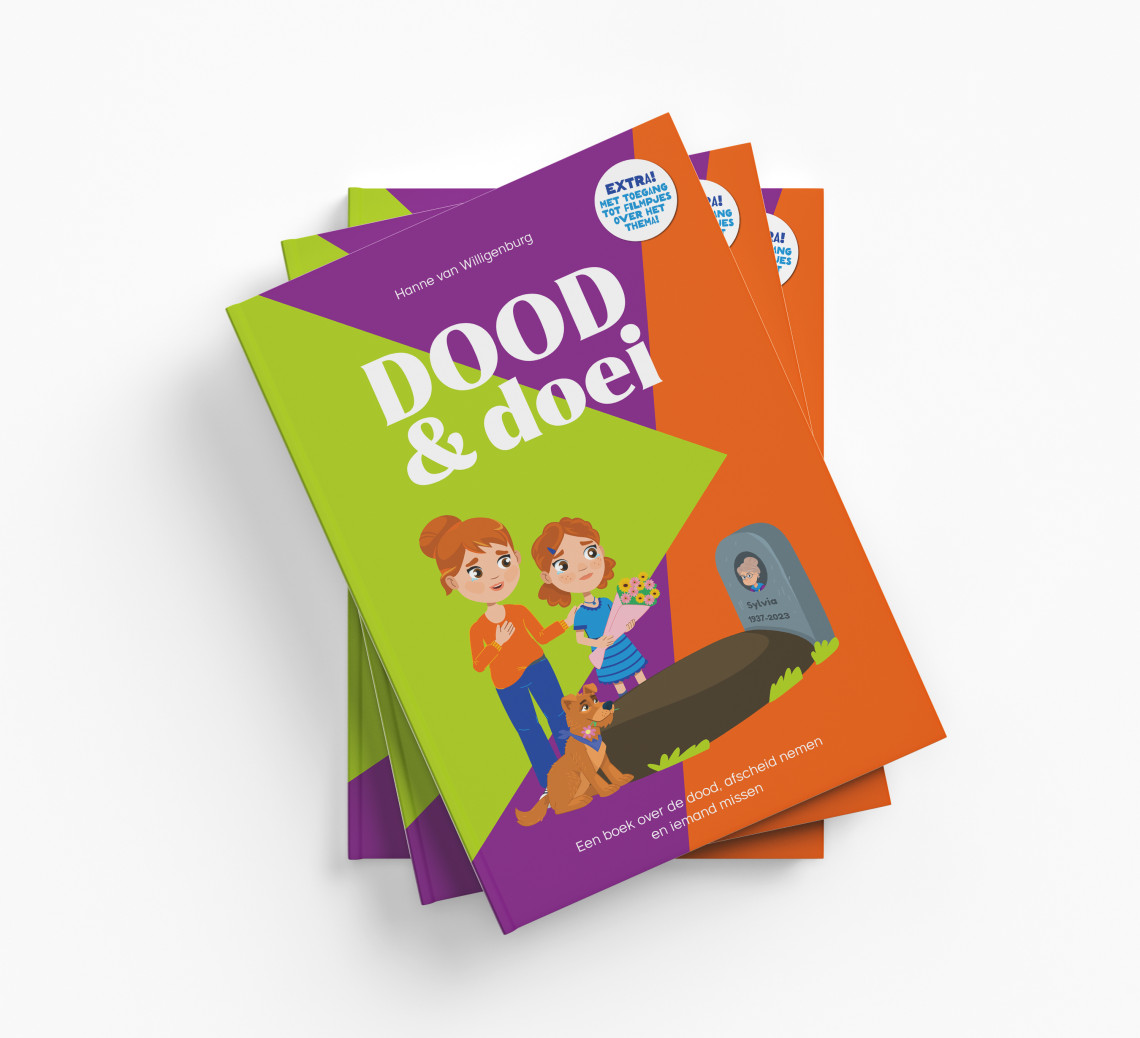 In het boek Dood & Doei gaat het om het verlies van dierbaren. Er staat bij elk hoofdstuk een QR-code en kunnen gebruikers een filmpje kijken over het thema. In de app komen kinderen in de interactieve belevingswereld van een hondje dat z’n oma heeft verloren. Samen gaan ze op pad, spelen games en ontdekken ze veel over doodgaan, afscheid nemen en iemand missen. In de app kunnen kinderen onder meer een lichaam scannen en ervaren dat er verandering optreedt als iemand dood is. Ze zien longen van een levend persoon, die belletjes bevatten. Bekijken ze daarna de longen van iemand die overleden is, dan ontdekken ze dat de longen kleiner zijn en dat er geen luchtstroom meer is. ‘Het boek en de app verkleinen de afstand tussen volwassenen en kinderen. Ouders komen sneller in gesprek met hun kind over waar ze zich over maken, hoe ze zich voelen en wat ze graag willen weten. Erover praten is belangrijk. Bij kinderen slaat de fantasie vaak op hol en die fantasie is in veel gevallen erger dan de realiteit.’