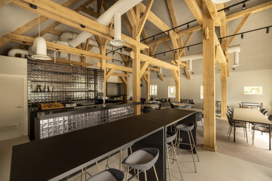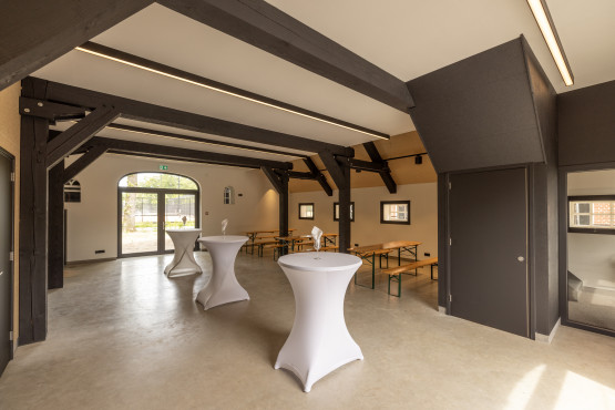 Tijdens de sloop kwam aan het licht dat vrijwel alle elementen van het gebouw aan vervanging toe waren. Enkel de oorspronkelijke buitenmuren overleefden de renovatie. De oude dakpannen werden na de installatie van het nieuwe dak teruggelegd, waardoor het lijkt alsof er aan het dak amper iets is gebeurd. Aan de binnenzijde van de boerderij is van twee verdiepingen één grote ruimte gemaakt, wat de lichtinval in het pand ten goede komt. Het gebouw – dat van clubhuis is omgetoverd naar een multifunctionele ruimte – rust volledig op de nieuwe houten constructie aan de binnenzijde.