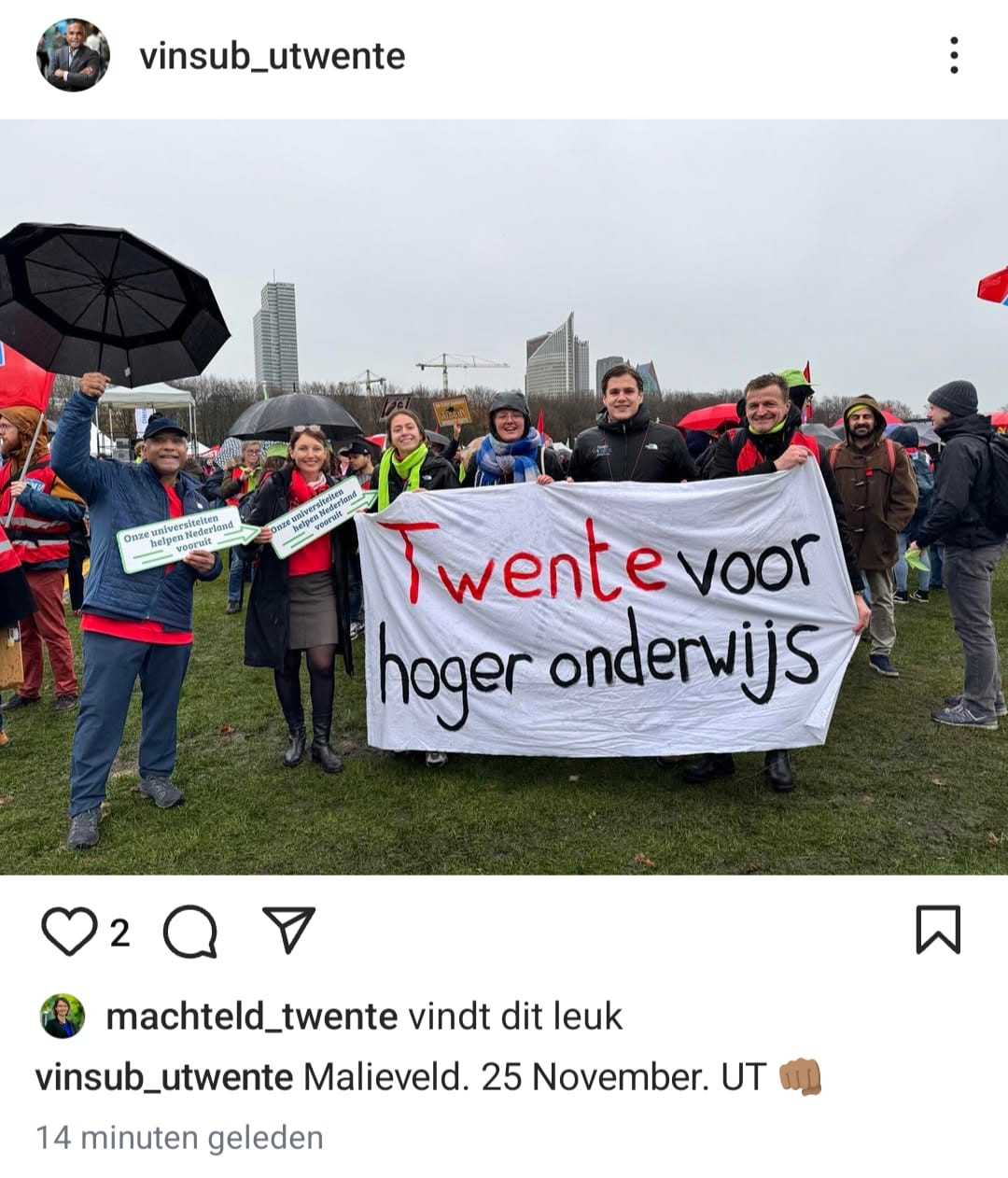 - Op 14 november zou er een grootschalig protest in Utrecht plaatsvinden. Onder de vlag van 'Twente for Protest' bereidden honderden UT'ers zich voor om naar Utrecht af te reizen.