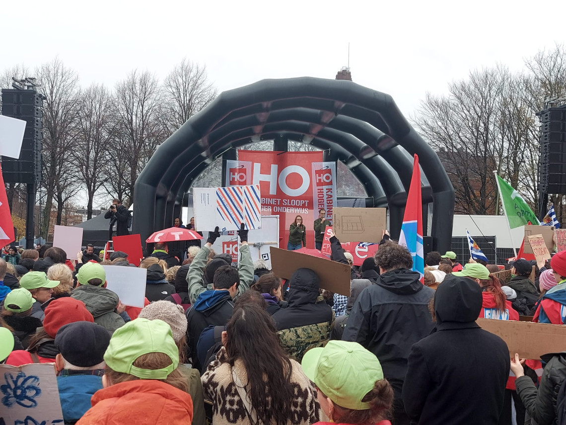 Het protest begint officieel om 13 uur, op het Malieveld. Vertegenwoordigers van vakbonden, actiegroepen en andere belangenbehartigers houden dan toespraken. Ook zijn er enkele politici aanwezig: Frans Timmermans (GL-PvdA), Rob Jetten (D66) en Sandra Beckerman (SP). Na de lezingen en een muzikaal intermezzo volgt om 14 uur de protestmars naar het ministerie van OCW. Om 15 uur eindigt het programma weer op het Malieveld.