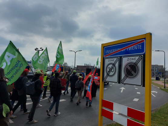 Organization of the strike is in the hands of trade unions FNV and AOb, together with action group Twente For Protest (WOinActie) and the Enschede Student Movement. This morning they try to mobilize and inform as many people as possible through picket lines and information stands. The plenary programme starts at 11:30 a.m., on the O&O square. At 1 p.m., a march to the city center will follow.