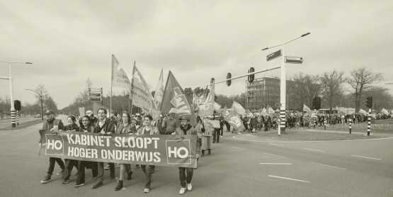 UT employees laid down work Tuesday in protest against higher education budget cuts. A photo report of the rally on the O&O square and the march to the center of Enschede.