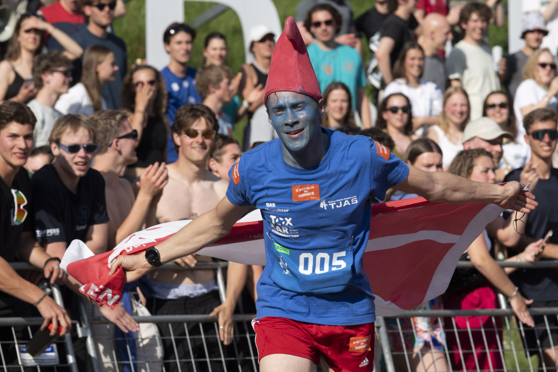 Hoe dat bevalt? Job Kuster van de Nijmeegse natuurkundevereniging Marie Curie ziet aan het randje van de campuscamping aan hoe een loper van team ‘Sticky’ zojuist een bierdouche krijgt van zijn teamgenoten. ‘Ergens is het idee van het lopen van Nijmegen naar Enschede wel vetter. Maar dit is een bijzonder leuke oplossing die goed uitpakt. Met name de gezelligheid op de camping voelt zelfs beter dan vorig jaar – en je ziet ook steeds opnieuw lopers langskomen terwijl je hier zit.’