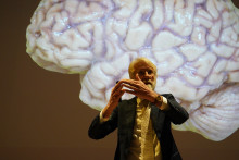 Daarom hamerde hij erop dat er voor ieder zittend uur een half uur bewogen moet worden. Hoe meer je zit, hoe minder bloed er naar je hersens stroomt en hoe minder je cognitieve reserve. Net als een voorgaande keer liet hij het publiek daarop drie minuten squatten.