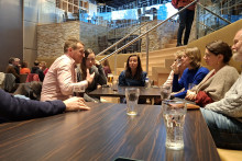 Na de speechrondes verdeelden de sprekers zich over de ruimte, zodat de aanwezigen in kleinere groepen konden discussiëren en vragen voorleggen die binnen hun vakgroepen spelen. Een LLL’er aan de tafel van Verhoog merkte op dat de ministeries de UT als voortrekker aanwijst, maar dat het nog wel verkocht moet worden. Ze vatte het samen met de vergelijking van een feest organiseren waar niemand komt. Verhoog benadrukte nog eens het belang van goede marketing de komende tijd.