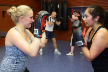 Daarnaast bleken UT’ers tijdens de Well-being weeks therapeutisch boksen erg leuk te vinden. Voor ons als sportcentrum was dat reden genoeg om er een cursus van te maken. Wie bij boksen meteen denkt aan het rammen op een bokszak, zit ernaast. Bij therapeutisch boksen draait het juist om het mentale aspect. Elke week ligt de nadruk op een ander thema; van balans en vertrouwen tot focus en lichaamsbewustzijn. Het gaat minder om de klap en meer om wat erachter zit.’