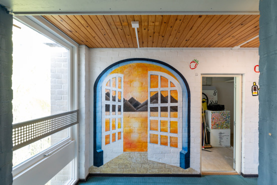 Een aantal ruimtes kreeg wel 'gewoon' de witte kleur aan de muur, zoals de gemeenschappelijke. 'Bij het vorige pand dat we opleverden werd de muur bij terugkomst meteen knaloranje geverfd', aldus Pierik. 'Dat deed wel een beetje pijn.'