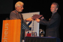 Aniek ter Mors (chemical engineering) bood vandaag, dinsdag 20 november, samen met drie andere studenten een petitie aan voor behoud van flatfeesten op de campus. Kees van Ast, lid van het college van bestuur, en Corné Knots, beleidsadviseur milieu aan de UT, en Jelmer van Straelen van het Evenementenbureau, namen de ruim vijfhonderd handtekeningen in de bestuursvleugel in ontvangst.