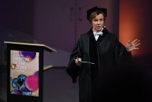 Vaste prik tijdens de dies natalis: de uitreiking van meerdere prijzen. Vrijdagmiddag ging de Professor De Winterprijs naar Anneliene Jonker, de Overijssel PhD Award naar Yifei Yu en de Marina van Dammebeurs naar Lisa Deijlen en Wietske Woliner.
