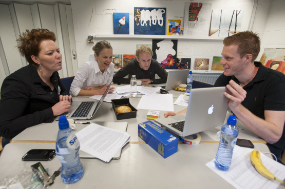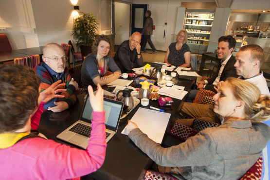 Een rondgang door de Vrijhof laat zien hoe verschillend de uitkomsten van een brainstorm over één en hetzelfde thema kunnen zijn. Myrna Hofman denkt met haar collega’s van de afdeling marketing & communicatie (groep 43) na over het versterken van het imago als ondernemende universiteit. ‘Na een individuele brainstorm bleken we best wel op één lijn te zitten. We willen een continue denktank die ieder jaar aan het werk gaat met een ander thema dat zowel voor de UT als de maatschappij relevant is.’