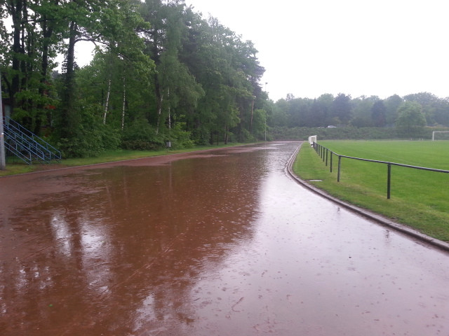 Normaal gesproken beslist de Bata op zaterdagochtend of de streep van de race op de sintelbaan kan worden getrokken. Omdat de atletiekbaan vol plassen staat en er meer regen wordt verwacht, heeft de organisatie die beslissing naar voren geschoven.