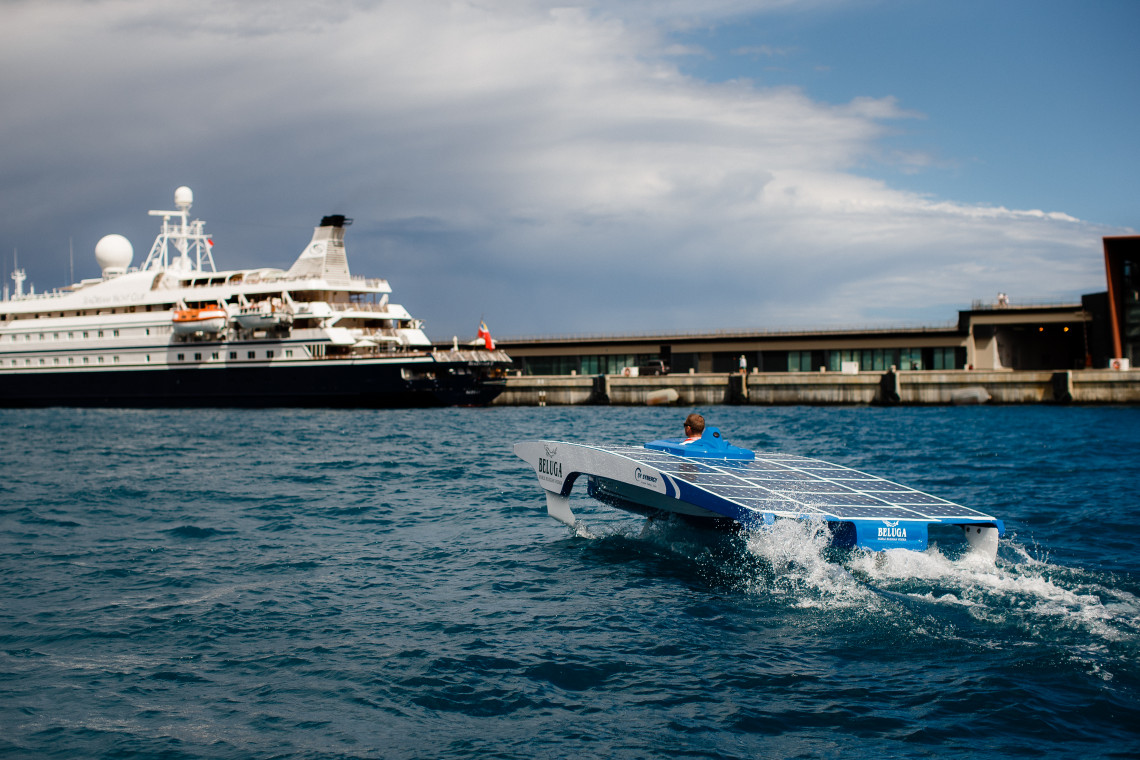 Hoe zo’n boot – uitgerust met zonnepanelen – eruitziet? ‘De laatste paar jaar werken teams als Private Energy steeds meer met draagvleugelboten’, legt Admiraal uit. ‘Daardoor wordt de romp van de boot tijdens het varen uit het water getild, waardoor je zo min mogelijk weerstand hebt. Zo’n boot kan een topsnelheid van 40 tot 45 kilometer per uur halen. Een draagvleugelboot lijkt ook voor ons the way to go te zijn.’