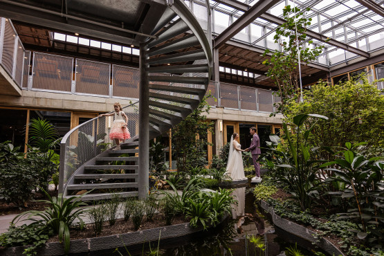 ‘Het gebouw was net twee maanden opgeleverd en dus spiksplinternieuw. Voor mij heeft het alles dat een trouwfoto mooi maakt. Mijn collega Marco Boevink - waar ik ook mee in de werkgroep zat rondom de verhuizing van de faculteit ITC naar de campus - bood aan om voor ons het gebouw te openen op die bewuste zaterdag. Toen ik het idee voorlegde aan Lotte, mijn vrouw, was ze gelijk enthousiast. Uiteindelijk won een van de plaatjes zelfs een trouwfotoprijs. Het roept nog steeds mooie en fijne herinneringen op als ik Langezijds binnenstap.’