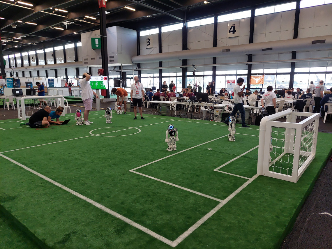 Wie dezer dagen een kijkje neemt in de hallen van het Parc des Expositions de Bordeaux, zal constateren dat technische problemen eerder regel dan uitzondering zijn, onder alle deelnemers. Robots vallen te pas en te onpas om, botsen, kijken de verkeerde kant op, missen voor open doel, schieten ‘m in eigen doel. Vaak staan ze tergend lang stil, wachtend op een kunstmatig intelligent seintje. Het kan nog erger, soms weigeren de robots volledig dienst en kan een wedstrijd niet gespeeld worden. Met andere woorden: wie vreest dat kunstmatige intelligentie de mensheid op korte termijn ontstijgt, doet er goed aan om een kijkje te nemen bij dit evenement.