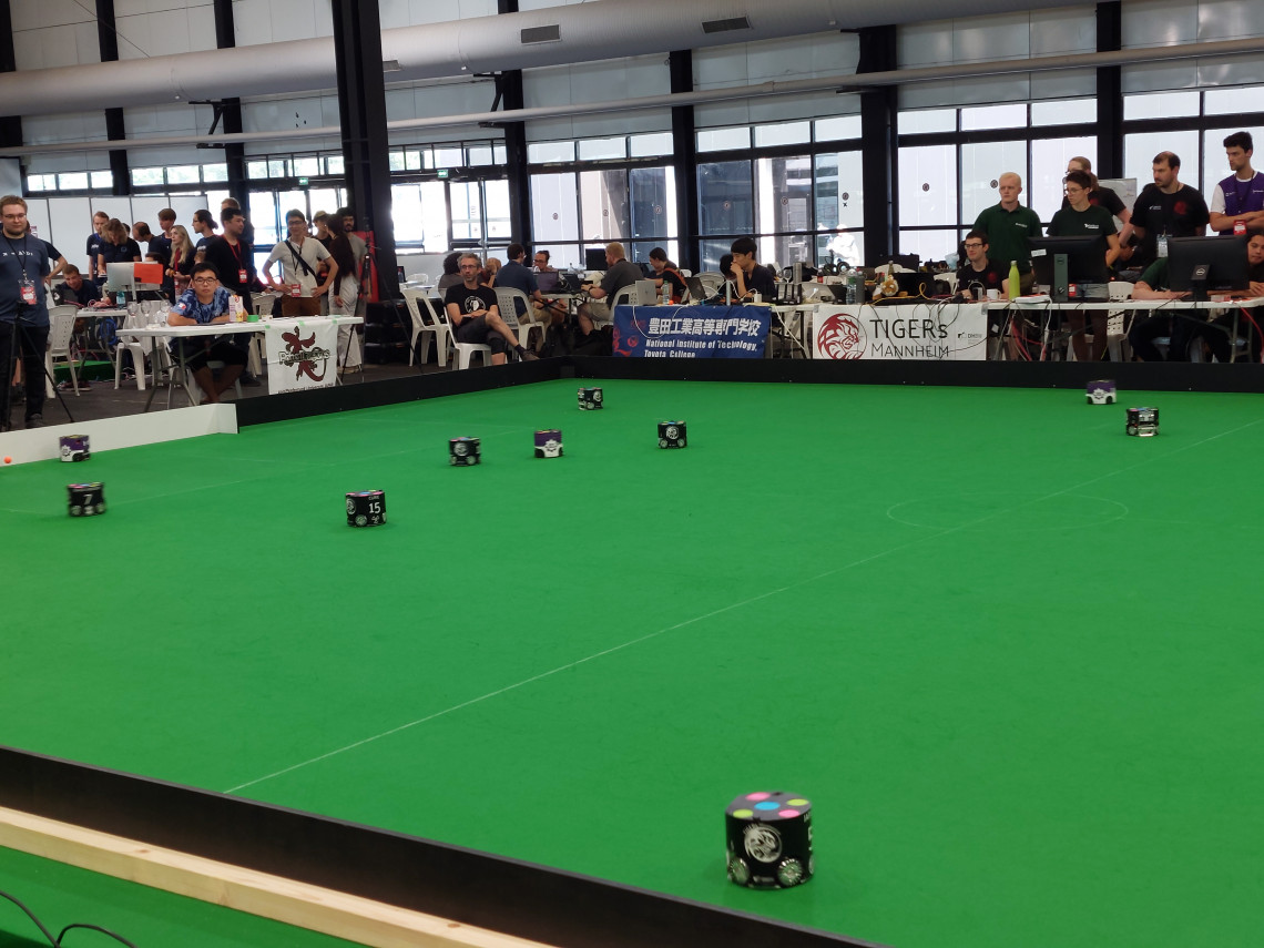 Die wedstrijd is erop of eronder. Aan het eind van deze middag spelen ze de kwartfinale. Ondanks de twee ruime verliespartijen gaat het team door naar de knock-outfase; de Small Size League kent zeven deelnemers, dus een kwartfinaleplek was van tevoren al een zekerheid. Of een sportieve revanche erin zit, weten we vanavond.