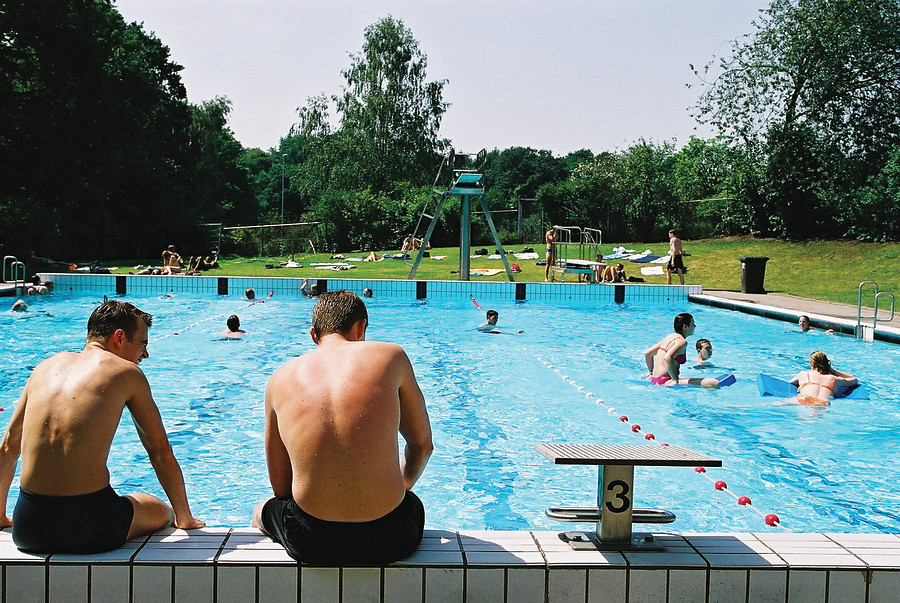 (Foto: studenten bij het buitenbad, op een warme zomerdag in 2002)