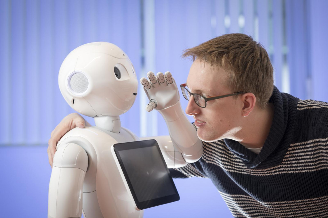 Can AI and humans truly become the same? After all, AI is defined as something that simulates human intelligence and intelligence is one of the key elements of being human. Even Dirk Heylen admits that UT research in this field is focused on creating ‘fake humans’, machines with human abilities. ‘Many people say that if AI exists, we should grant it the same rights and obligations as humans have, but I think that AI will be quite different from us – it is still only a simulation of a human. AI doesn’t grow up, it doesn’t have the same social environment, it lacks the richness of experience that humans have. There is therefore a huge difference,’ adds Professor Heylen, and his colleague Gwenn Englebienne feels the same way: ‘Technology is becoming more social and intellectual distinction is disappearing, but physically machines are completely different beasts from us and this difference will probably always be there. We’re still leading and machines are the ones that have to help us and adjust to our way of life.’