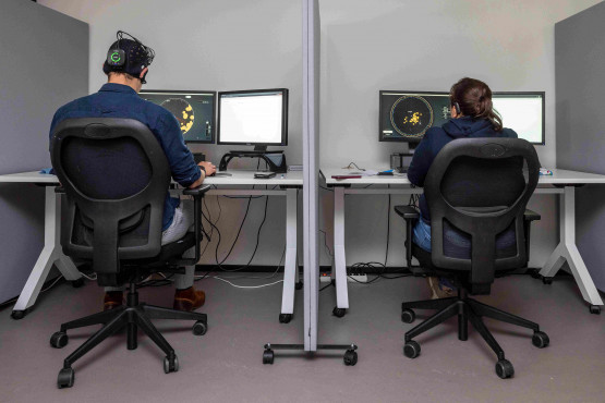 Thales ontwikkelt commandocentrales, bijvoorbeeld voor op een fregat van de marine. Op zo’n schip werken meerdere operatoren samen met complexe en steeds intelligentere systemen, of beter: computers met kunstmatige intelligentie (AI). In de proeftuin wordt deze samenwerking onderzocht, legt De Heer uit. ‘De vraag is hoe mensen onderling of met een computer samenwerken en welke werklast daarbij komt kijken, en welke gevolgen dat heeft voor de prestaties van het team.’