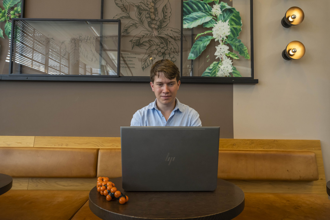 Surprisingly, Smook’s research did not take place in a real laboratory, but instead, his computer functioned as his experimental set-up. In this simulated space, he designed virtual gas (odor) mixtures and virtual polymer brushes with different properties. Then, he modelled their interactions. Did the different (virtual) odor molecules repel or attract each other, and how did the polymer brush bind the different scent molecules present in the gas mixture? By subsequently varying the properties of the polymers and using different molecular odor mixtures, he gained more insight in the factors influencing the scent molecule-brush attachment.