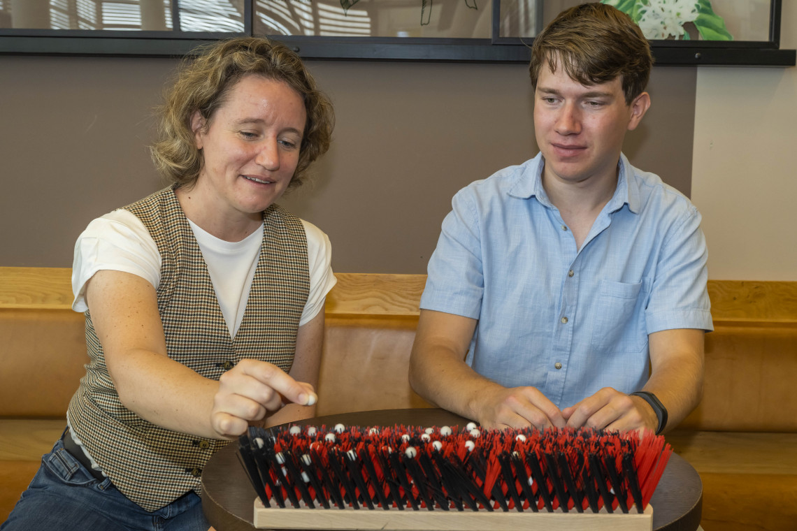 ‘Using the model, we could simulate how these gas molecules reacted to each other in terms of attraction or rejection and how this influenced their connection to the brush,’ Smook explains. ‘Where and how are these molecules attached to the brush and how do variations in the gas mixture as well as the brush hair density influence this process?’ His simulations showed similar behavior of scent molecules as in a human nose: when one particular gas had a strong attraction to the polymers, other gases could be pushed out. This means that multiple scents can influence each other, making it more difficult to interpret the signal from a single sensor. ‘To solve this problem, we need multiple sensors that are all coated with a different brush,’ Smook continues. ‘This way, each sensor looks at the scent from a slightly different perspective, and together they create something like a fingerprint through which it can be recognized.’