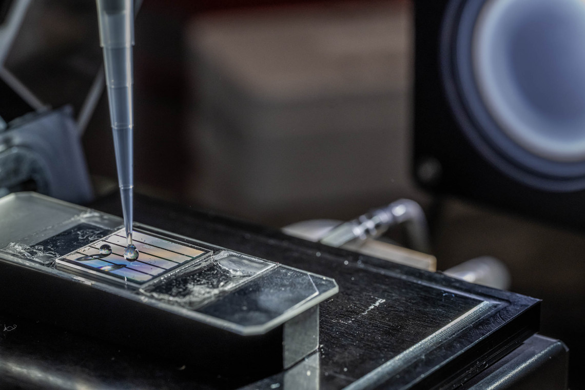Marin and his team study the controlled evaporation of the tiny microplastic-containing fluid droplet in a chamber, where they can manipulate temperature and humidity. Depending on the different evaporation conditions, but also the microplastic concentration in the droplet, the particles may congregate in different ways, for example depending on their size.