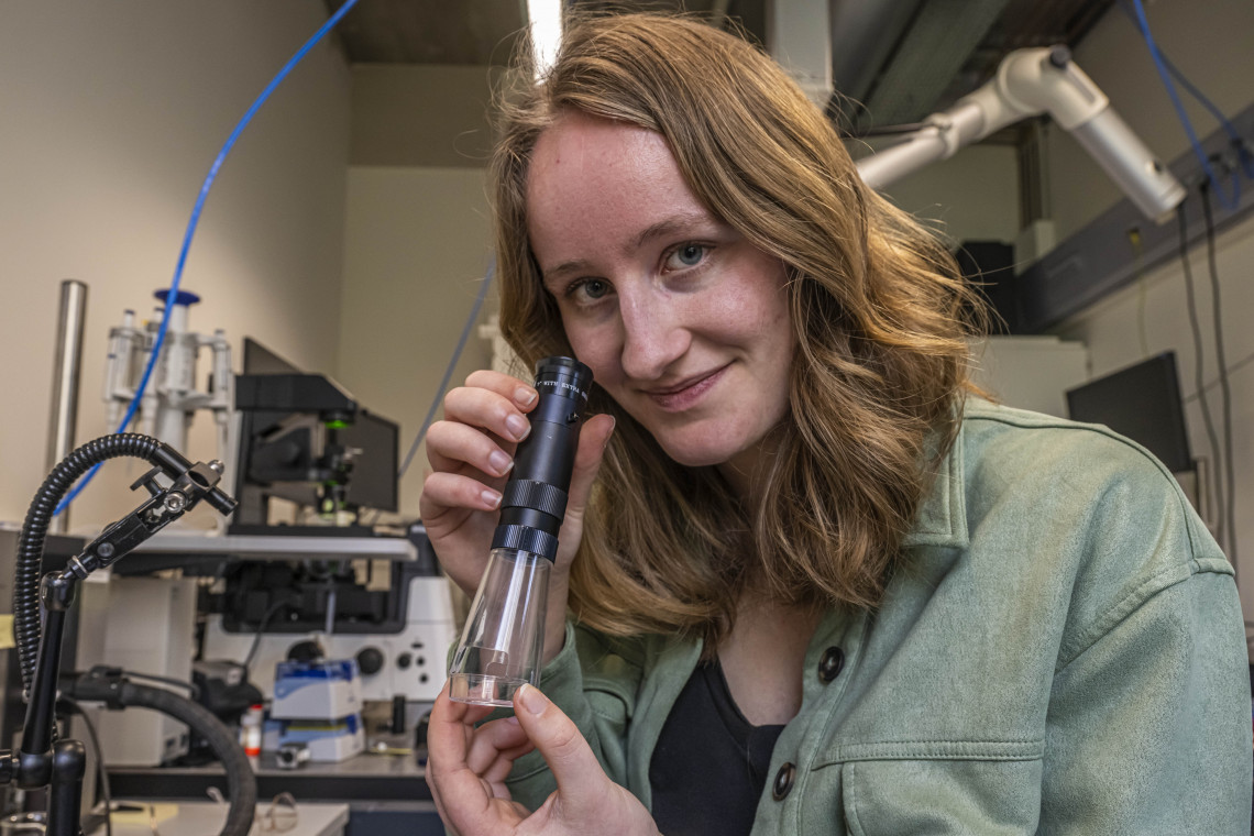 In 2021, Marin’s colleagues from UT’s Nanobiophysics (MESA+ Institute for Nanotechnology and Technical Medical Centre) set an important step towards quantifying smaller microplastics. They combined fluorescence microscopy with so-called single particle tracking to count and size small microplastics in fluids. The scientists managed to quantify plastic particles as low as 45 nanometers, however, the type of microplastic could not be determined.