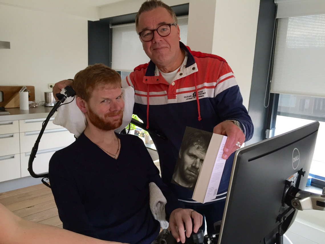 Het is even raar, dat communiceren via de computer. Maar het went snel. Garmt beantwoordt alle vragen via een oog gestuurde computer. Zijn ogen schieten over het scherm, blijven even hangen bij een letter en zo vormen zich woorden en zinnen. Een jaar eerder nam hij zo’n 1500 zinnen met zijn eigen stemgeluid op. Daardoor kan hij nu de woorden ook ‘uitspreken’.