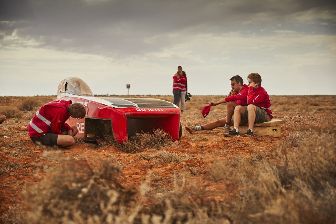 Met Evert was het oké. Maar voor de auto was het einde oefening, concludeerde het team al snel eensgezind. Als pleister op de wond en om het avontuur alsnog met een goed gevoel af te sluiten, vervoerde het team de zonneauto op een vrachtwagen naar Adelaide, waar coureur Evert vervolgens in de RED E de finishlijn passeerde.