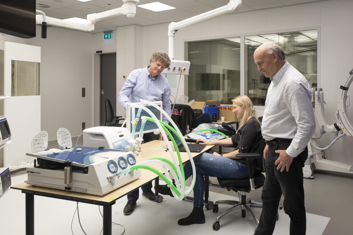 From the get-go, the UT scientists’ projects were driven by the current problems caused by the pandemic. When there was a lack of ventilators in the beginning of the crisis, the researchers investigated how to use one ventilator for two patients at the same time. ‘We worked long days and eventually we were able to find a solution,’ says Frans de Jongh. ‘At the UT TechMed Centre, we had artificial lungs we could use to test anything we needed and we prepared a report for the Intensive Care Association. Our solution worked but we warned it should only be applied in case of emergency because it couldn’t be made patient specific. Luckily, the solution didn’t need to be applied in the Netherlands, because enough ventilators were supplied by then.’