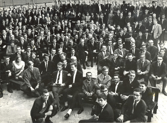 Een introductie zo massaal als de huidige Kick-In was in 1964 uiteraard niet voor te stellen, zo vertelt de alumnus als de grote feesttent op het Ganzenveld in zicht is. ‘Al duurde onze introductieperiode wel zo’n twee weken. Maar je moet je voorstellen dat er gewoonweg nog niks was. Zelfs geen ouderejaars. Een twintigtal corpstijgers her en der uit Nederland werd ingevlogen om ons klaar te stomen voor onze tijd als studenten.’