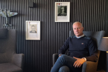 The first coffee arrives from behind a counter made out of an old aircraft wing. It is brewed in a classic Boeing galley kitchen with its carefully designed compartments. The waiting area features old aircraft seats, and the route to Hamminga’s office passes a lavatory converted into a phone booth. His office is filled with Second World War memorabilia: aviator caps, Spitfire models, and, hanging above his desk, a drone. In short, the building has a clear theme: Hamminga is flying high.