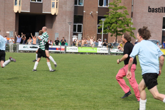 Bij het winnende doelpunt, met rechts Frank Eulderink in roze broek.