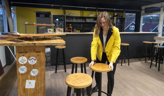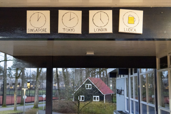 And then there is the luxury of an own clubhouse, the Paviljoen: an elevated canteen, with a terrace and a view of the courts. ‘We renovated the interior last summer: we moved the bar, there is now a separate kitchen, and the barstools now bear the logos of former boards. And of course, several items were painted Ludica yellow. We have enough space for more than 150 people. If that is allowed again, of course.’