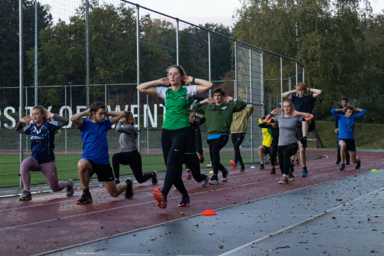 Qua training krijgen we ondersteuning van een professionele looptrainer en werken we met een trainingsschema. De Batavierenrace is een piekmoment waar het loopschema naartoe werkt. We zijn net klaar met de lange zware loopschema's van bijvoorbeeld 4x2000 meter met korte pauzes. Dat zijn echt karaktertrainingen, je gaat maximaal kapot. In de laatste weken richting de Bata wordt de afstand afgebouwd om meer snelheidstrainingen af te werken.’